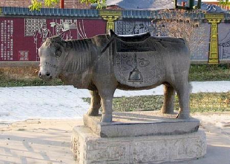 石牛刻于明弘治十五年,原为城东南“孙公庙”中之饰物。石牛为整块青牛雕刻,牛体下有基座两层,上基座长1.21米,宽0.7米,高1.35米;下基座长1.45米,宽0.77米,高0.3米。