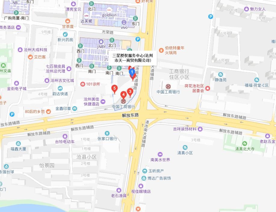 地址:沧州市清池大道与解放路交口处西北角天一商贸三星专卖店一楼(沧州信誉楼南侧10米)