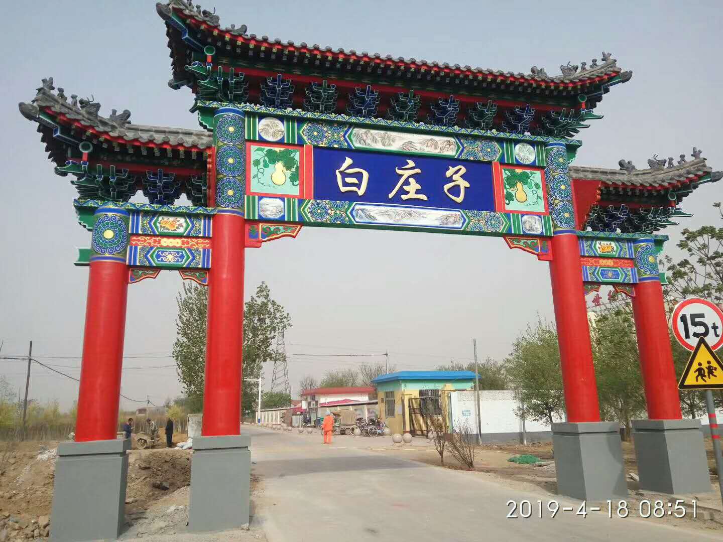 白庄子原来属于青县管辖,为青县南庄镇苏白庄,因为苏姓早在此居住,白姓人比较多,乾隆元年白姓迁入此村,所以村名为苏白庄。说起南庄镇大家都不知道哪里,其实就是西花园,为原青县十二镇之一。这个地方是三县交界,北有兴济县,东面隔河也是兴济县,南是沧州,西是青县但是有一个大淀为西泊,从乾隆二十七年开始把西泊水排出变良田,这个地方土地便多起来,但是地势低洼,有的地方海拔三米,所以为九河下梢之地。六三年农历六月二十四滹沱河决口,水淹沧州西部,白庄子也被大水围困。白庄子的房子有高高的宅基,也是祖先为避免水淹而发明的。村东在现在牌楼位置有一条南北走向的大堰,把水挡在堰西。这个大堰不知哪年筑起,却在上世纪七十年代初被移平。在老党员的带领下,白庄子人务实肯干,上世纪六十年代被评为红旗村。八十年代村上购置电影机,百姓每天都看电影。八十年代初开始建私人家具厂,后来影响整个沧州地区。