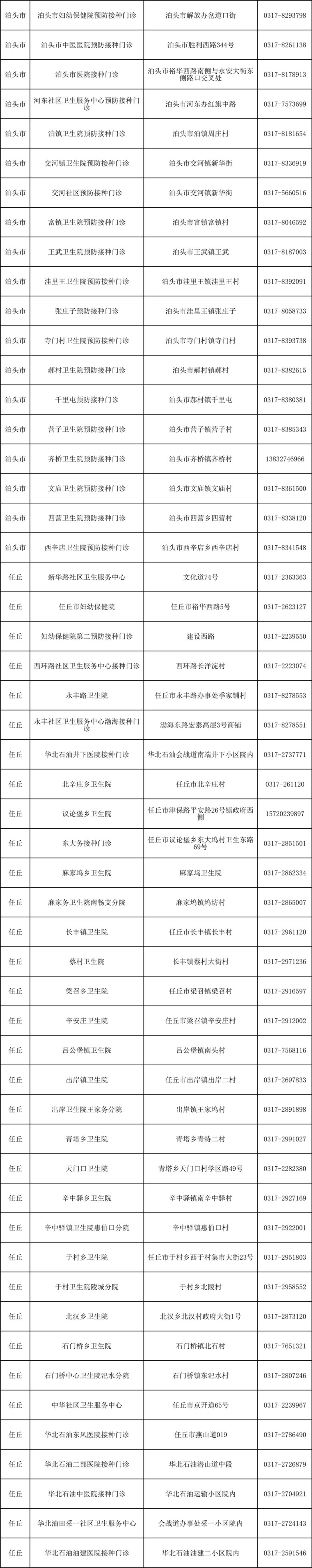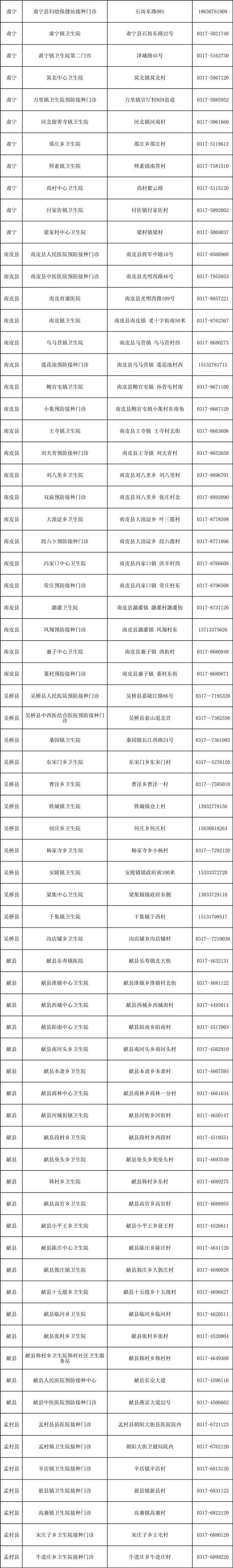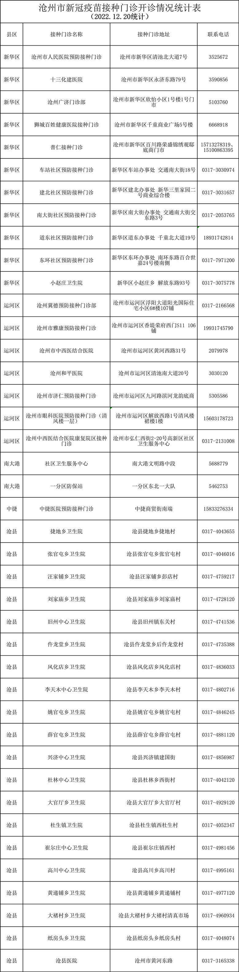 沧州市新冠疫苗接种门诊开诊情况统计,根据沧州疾控2022年12月20日发布的信息整理,各地接种门诊开诊变化情况请咨询各县(市、区)卫健局或疾控中心,前往门诊接种前请提前电话联系预约。