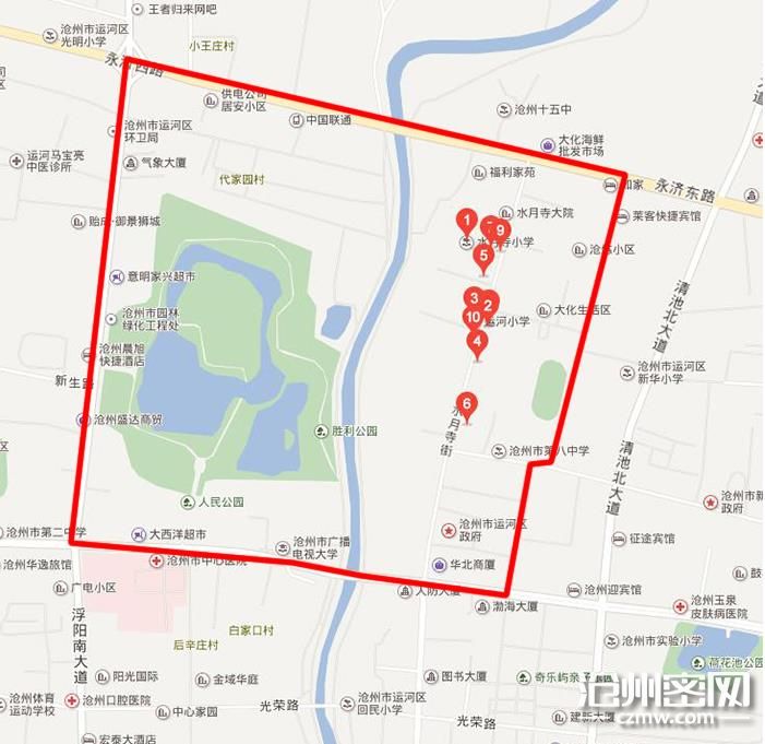 水月寺小学:东至红卫街、一中前街,南至新华路、维明路,西至浮阳中道,北至永济路。
