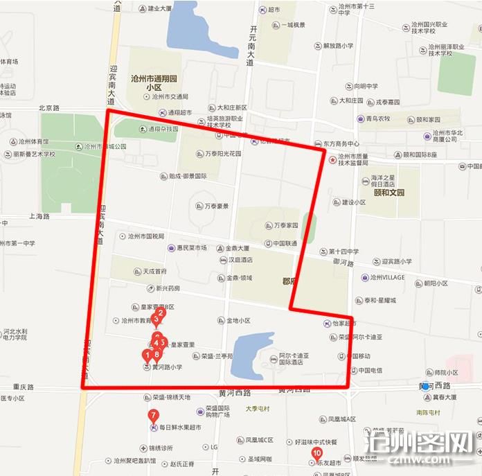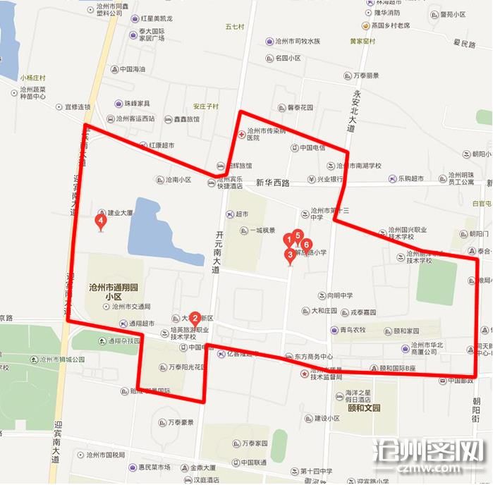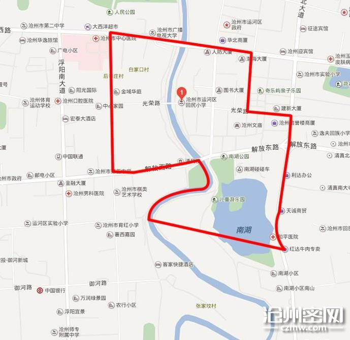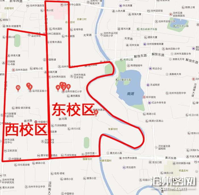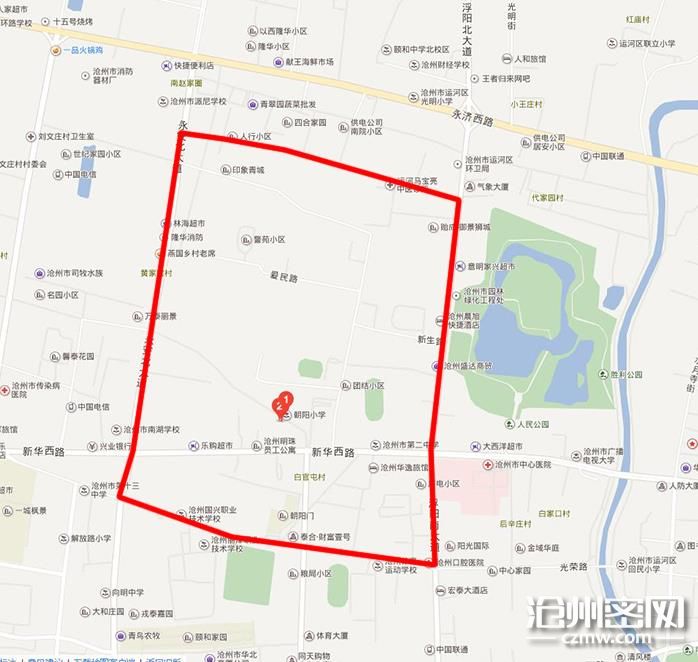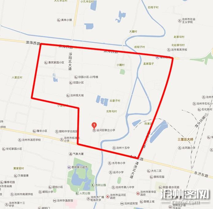 回民小学:运河以东,东至清池大道,南至南川楼村,北至新华路。运河以西,南至解放路,西至浮阳大道,北至新华路。